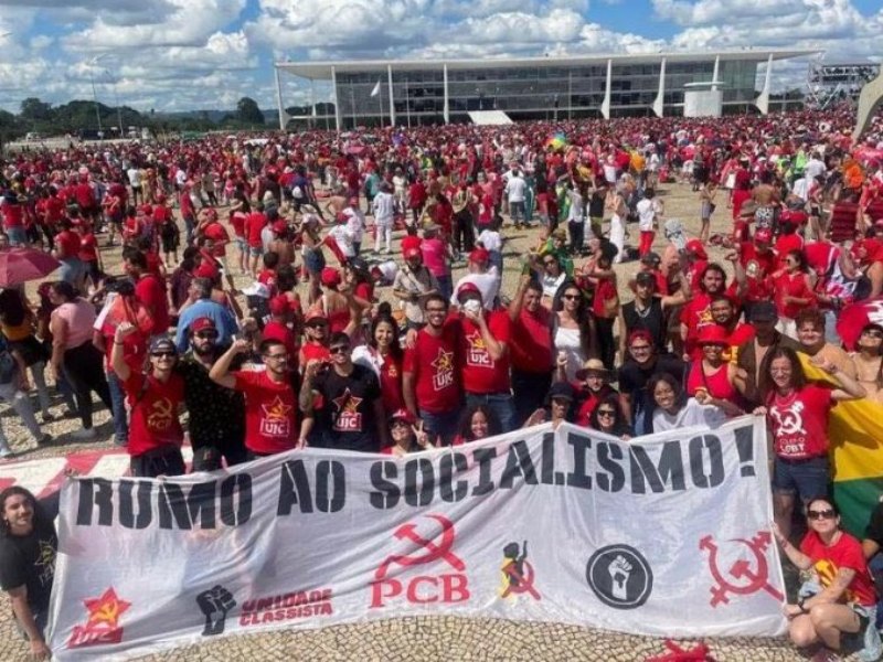 Para começar, uma imagem de ilustres cidadãos (desculpe, não resisto às ironias) sustentando uma faixa produzida pelo partido comunista brasileiro, na companhia de outras siglas desimportantes, em que se lê: “RUMO AO SOCIALISMO!”